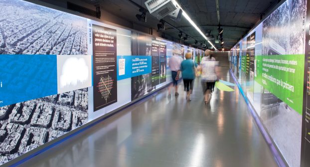 La sala d'exposicions de TMB recull les dades més rellevants de la contribució del transport públic a la millora ambiental. La mostra detalla l'aportació de l'empresa a la reducció de consums, emissions contaminants i residus.