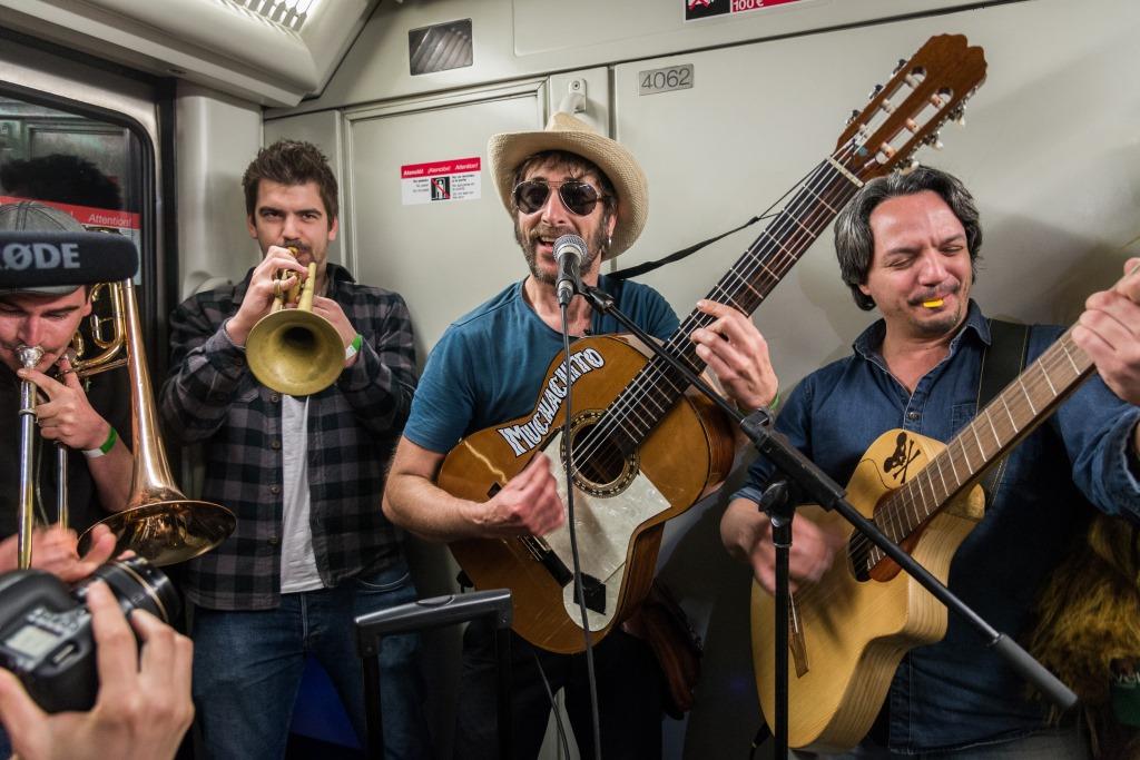 El cantant Jairo Perera i la seva banda van viatjar festivament amb la línia 1 des de Santa Coloma per fer un concert irrepetible al vestíbul d'Universitat.