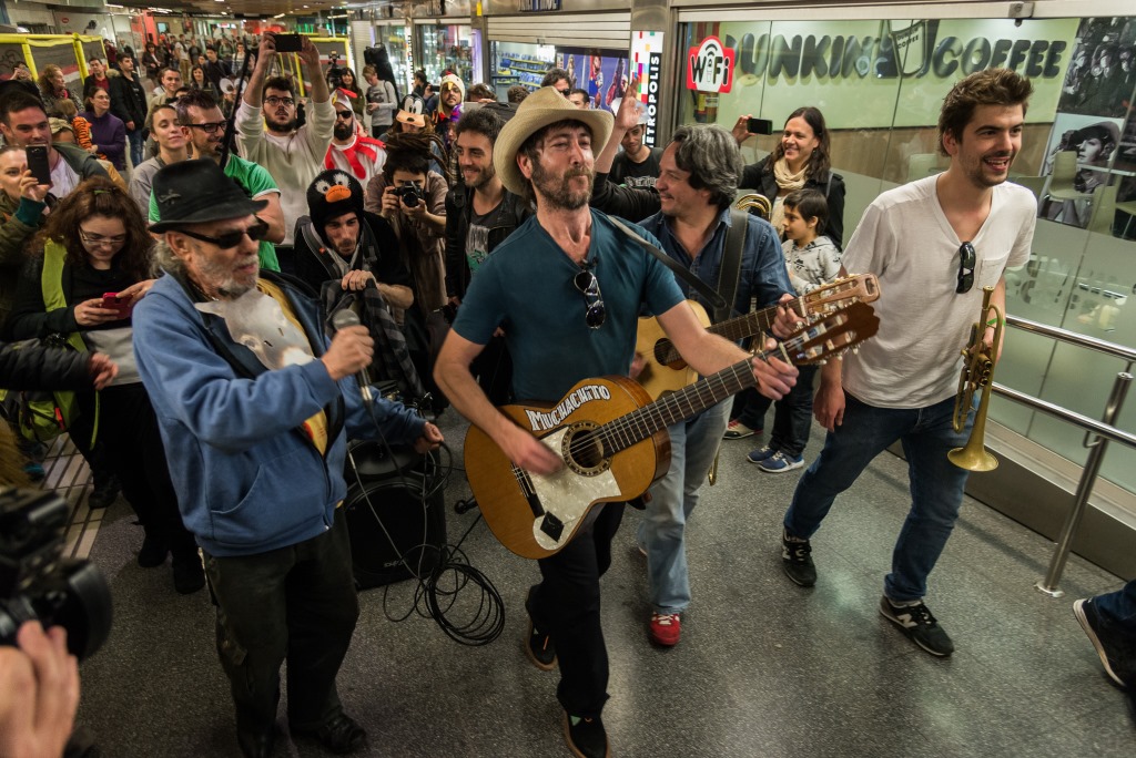 El cantant Jairo Perera i la seva banda van viatjar festivament en metro i van oferir un concert atípic al vestíbul de l'estació d'Universitat (L1 i L2) davant d'unes 200 persones. La banda presentava així en primícia alguns temes del seu quart disc, El Jiro, amb ritmes variats i festius de diferents estils, com la rumba, el rock o el funk.