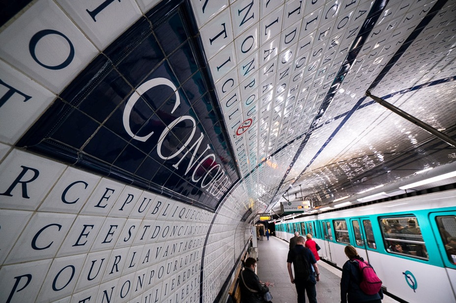 En setè lloc hi ha l'estació de la Concorde, amb la Declaració dels Drets Humans i dels Ciutadans confeccionada durant la Revolució Francesa del 1789 a les seves rajoles.