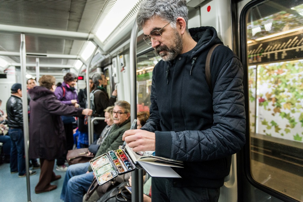 Hem conegut un dibuixant suburbà que diàriament troba en els seus viatges en metro un moment fantàstic per dibuixar. Els seus retrats transmeten les emocions dels usuaris amb qui comparteix trajecte.
