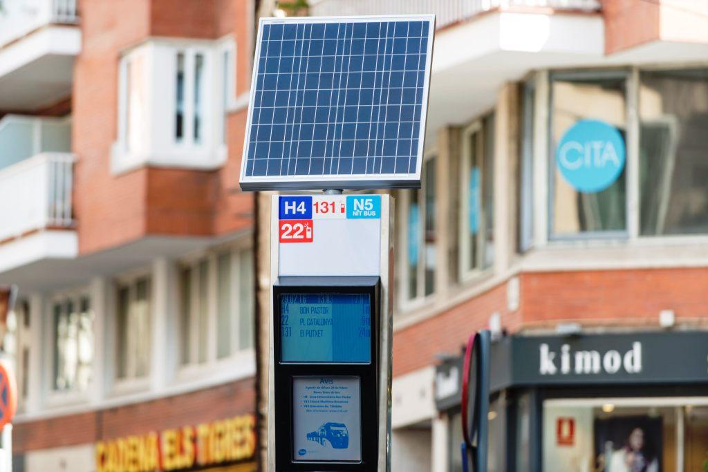 TMB va estrenar l'any 2012 el primer model de pal solar en dues parades. Avui, la xarxa de parades utilitzades pels autobusos de TMB (que supera les 2.500) té 30 pals solars (10 de nous), 420 pantalles convencionals d'informació dinàmica (54 de noves) i 16 smartquesines, a banda dels dispositius d'informació instal·lats per l'AMB.