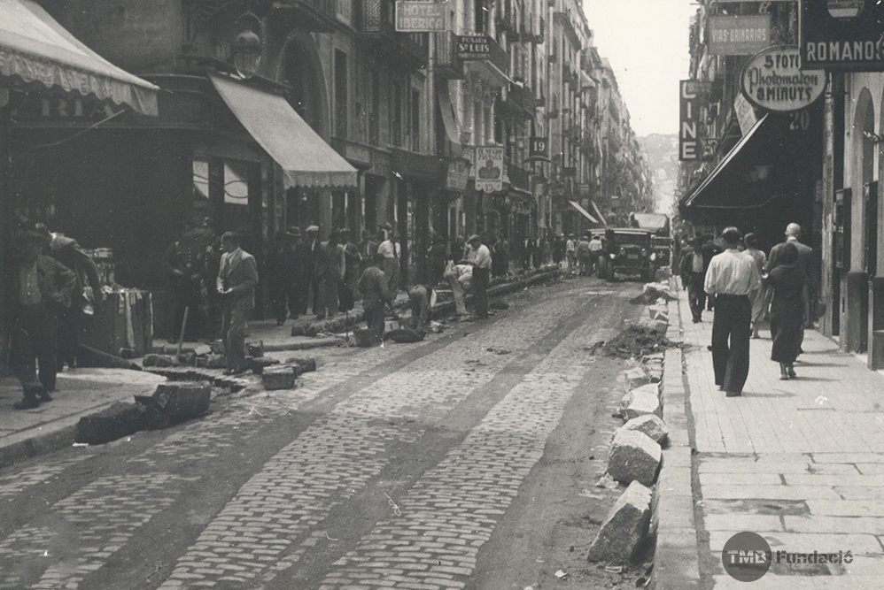 La pregunta històrica d'aquesta setmana ens mostra un carrer de Barcelona fotografiat el 1936. Saps quin? Publicarem la resposta a la nostra pàgina de Facebook i al perfil de Twitter corporatiu @TMB_Barcelona.