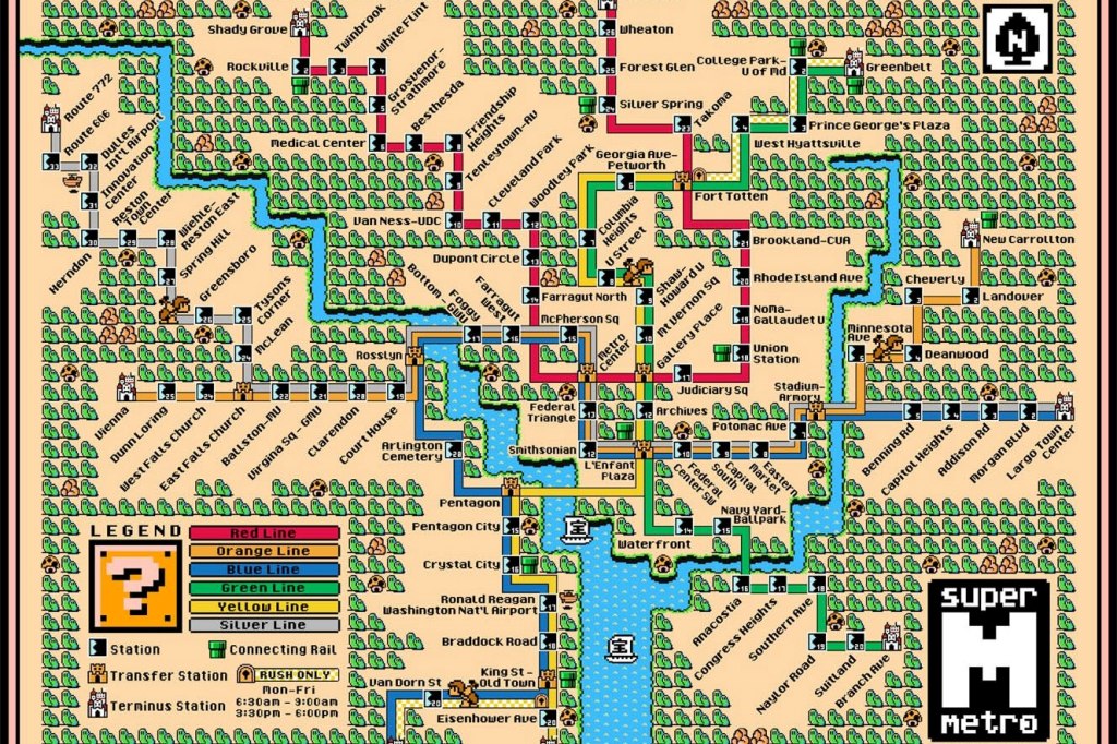 Hem trobat uns divertits mapes de metro de les ciutats d'Atlanta, Calgary, Mont-real, Ottawa, Pittsburg, Portland, San Francisco, Toronto, Vancouver i Washington DC creats en l'estil del videojoc Super Mario Bros. El seu dissenyador és Dave Delisle i es poden consultar en el seu lloc web.
