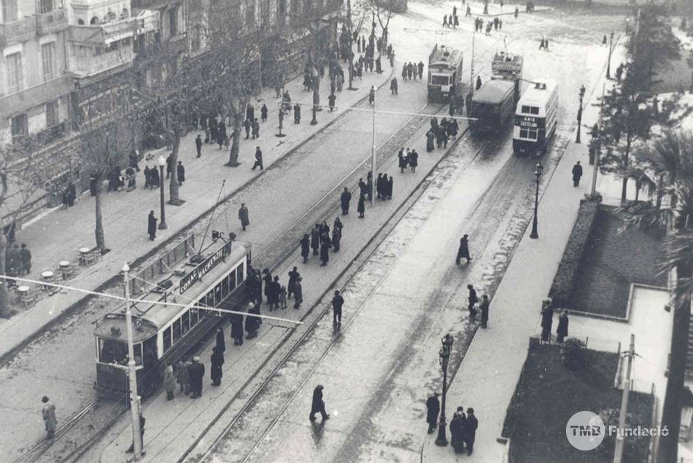 Aquesta fotografia és de l'any 1941 i gràcies a ella podem veure com era en aquella època un lloc molt cèntric de Barcelona. Saps quin? Publicarem la resposta a la nostra pàgina de Facebook i al perfil de Twitter corporatiu @TMB_Barcelona.