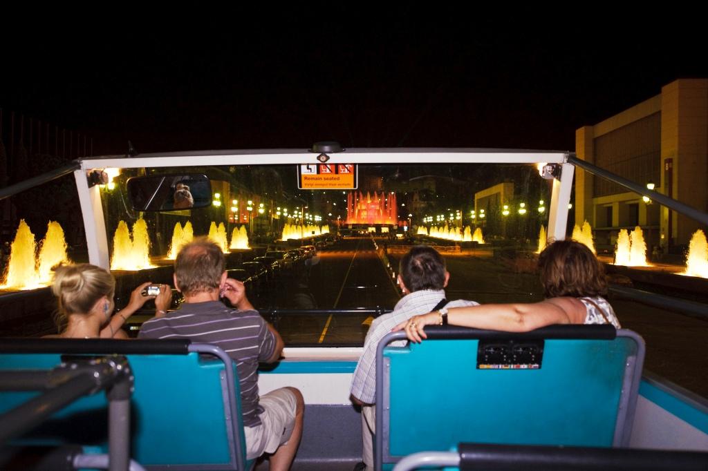 Aquest passeig nocturn únic inclou una parada a la Font Màgica de Montjuïc per assistir a l’espectacle de música i llum. Altres punts d’interès són la plaça de Catalunya, el barri Gòtic, la Pedrera, la Casa Batlló, la Torre Agbar, el Teatre Nacional de Catalunya, l’Hospital de Sant Pau, la Sagrada Família, el passeig de Colom, el Poble Espanyol i la plaça d’Espanya. A més, dalt del bus hi ha un informador que comenta, en tres idiomes (català, castellà i anglès), tot el recorregut per poder treure el màxim partit a la visita.