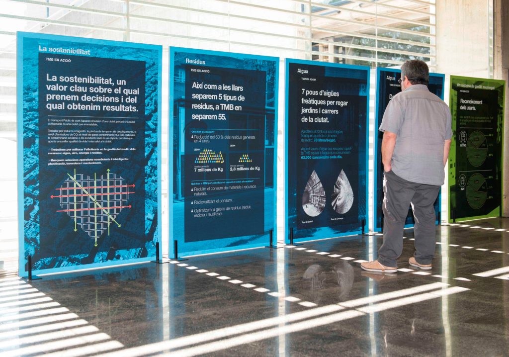 A l'exposició s'hi pot descobrir que, en quatre anys, la flota d'autobusos ha reduït el 60% les emissions, que s'aprofita l'aigua de set pous del metro per regar jardins i carrers i que a TMB hi ha criteris de compra verda i se separen 55 tipus de residus diferents.