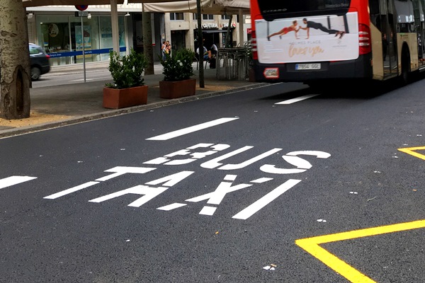 També s’estan senyalitzant aquests dies els nous trams de carril bus a la part alta del passeig de Sant Joan, en tots dos sentits, que sumen uns 900 metres i seran utilitzats per les línies H8, 20, 45, 47 i 55.
