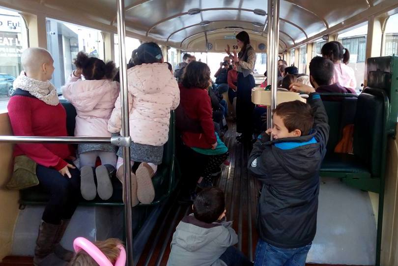 El bus clàssic Chausson, número 59, del 1955, una de les joies del patrimoni històric de la Fundació TMB, ha estat l'escenari aquest dissabte de la primera sessió de contactontes organitzada per la llibreria infantil i juvenil La Petita, que posa al servei de la literatura infantil els autobusos més singulars de TMB.