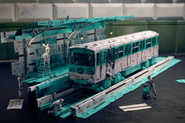 Recuperem el projecte del col·lectiu No Name de realitzadors i grafistes 3-D dedicat al metro de París: una maqueta tridimensional d'un cotxe típic de la RATP, amb les rodes pneumàtiques, sobre la via i aturat a l'andana d'una estació, tot construït amb bitllets de cartolina blancs i verds. I envoltat de tot luxe de detalls!