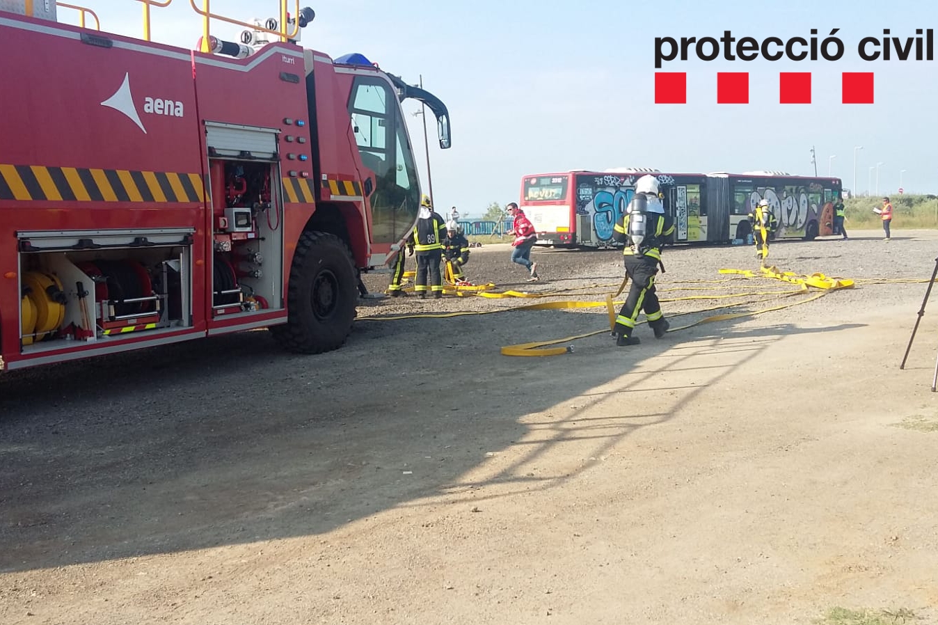 Protecció Civil de la Generalitat de Catalunya i l’Aeroport de Barcelona-El Prat han realitzat aquest matí un simulacre general d’emergència aeronàutica en un aparcament de la platja del Prat de Llobregat, en què s'han verificat normes i procediments dels plans d’autoprotecció de l’aeroport i del municipi i el Pla d’Emergències Aeronàutiques de Catalunya, que Protecció Civil de la Generalitat ha activat.