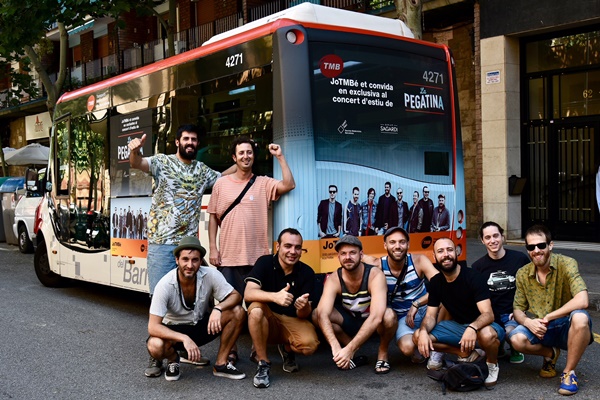 Enèrgics, divertits i ballables, els membres de La Pegatina van portar aquest dilluns l’alegria contagiosa dels seus ritmes (rumba, merengue, ska) al món del transport públic. Primer van viatjar amb autobús fins al Centre de Control de Metro, on van conèixer amb detall la gestió diària de la xarxa, i a la tarda van brindar un concert exclusiu per a membres del JoTMBé en el marc singular del recinte modernista de Sant Pau.