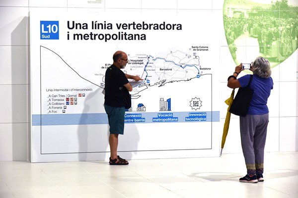 Des del 8 de setembre, en què es va posar en servei el ramal, els plafons explicatius estan instal·lats al nivell intermedi de la nova estació de metro, sota el passeig de la Zona Franca.