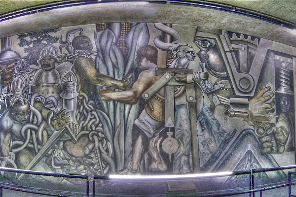 L'obra d'aquest artista, relacionat amb el mexicà Diego Rivera, no deixa d'intrigar els viatgers.