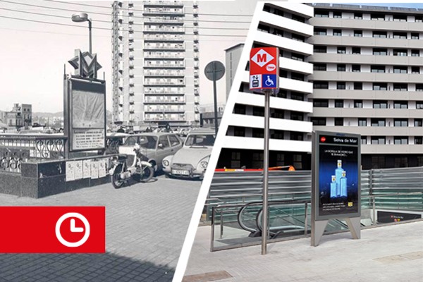 Durant dotze setmanes, tots dos perfils faran servir una selecció d’imatges històriques de TMB per enfrontar-les a fotografies actuals d’aquella mateixa estació. Ahir va ser el primer dia d’aquest abans i ara. La primera protagonista del nostre exercici de memòria ha estat l’estació Selva de Mar de la L4. Us en recordàveu?