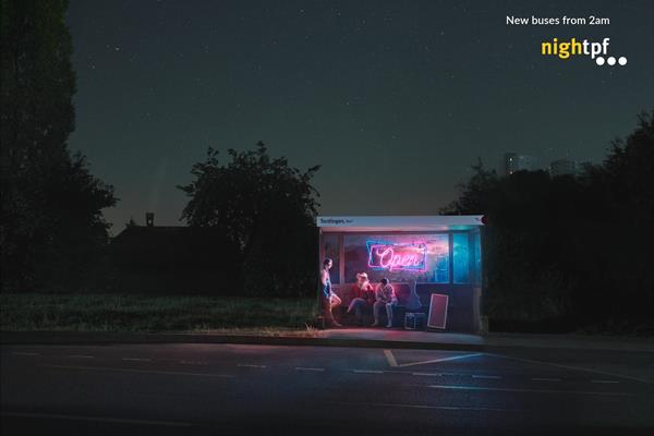 La companyia de transport públic d'aquest cantó suís, TPF, volia donar a conèixer l'ampliació del seu servei d'autobusos nocturn. L'agència de publicitat Franz & René Switzerland va idear uns materials en què, en la seva versió digital, podem veure, fins i tot, com titil·len els neons. I el missatge és clar com l'aigua: les parades estan ara obertes de nit.