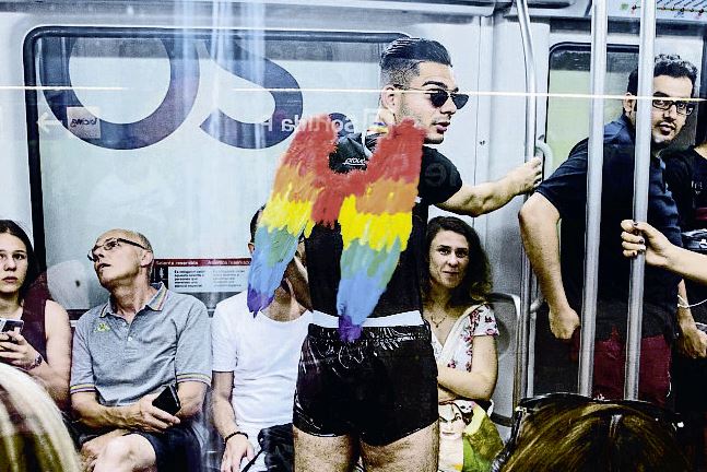 Amb motiu del Pride Parade, la desfilada de carrosses de l’acte Pride Barcelona 2019, que va tenir lloc a Barcelona dissabte a la tarda, TMB va recomanar el metro com la millor manera d'anar-hi. I el fotògraf de La Vanguardia Xavier Cervera va anar a la línia 3 de metro per captar la imatge que presidiria la portada del diari l'endemà: un participant a la desfilada equipat amb unes vistoses ales d'àngel decorades amb els colors de l'arc de Sant Martí.