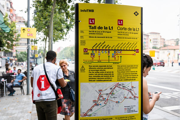 L’abast i la complexitat de l’actuació han motivat que TMB desplegui des del 17 de juny passat una campanya d’informació que inclou cartells en estacions i trens, missatges de megafonia en tota la xarxa de metro i en trens de la línia 1, fullets, clips al sistema MouTV, enviament massiu de correus electrònics a través de JoTMBé, missatges en les pantalles dels autobusos i les parades, anuncis en mitjans de comunicació i missatges en xarxes socials. Des de la setmana passada s’hi han afegit informadors a les estacions afectades, els quals orienten els usuaris sobre la millor alternativa de què disposen durant el tall segons el desplaçament que hagin de fer.