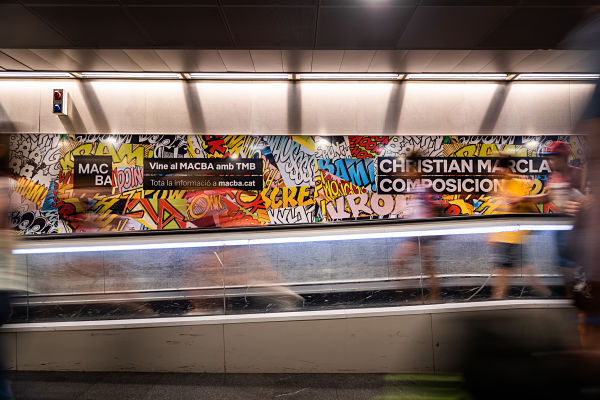 Una allau d'onomatopeies escrites a les parets sorprenen els viatgers i usuaris de l'estació de metro de Diagonal, a costat i costat de les cintes rodants. Bafarades, tipografia, colors cridaners… elements que fan venir a la ment la iconografia típica dels còmics.