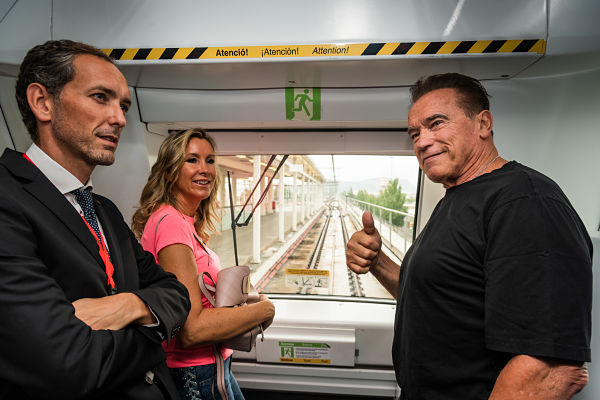 L'actor i exgovernador de Califòrnia, Arnold Schwarzenegger, ha conegut com a passatger VIP la L10 Sud aquest dissabte i no ha dubtat a recomanar a través dels mitjans de comunicació que totes les ciutats adoptin sistemes edficients i sostenibles de transport col·lectiu. Va destacar especialment que la xarxa de metro de Barcelona es mogui íntegrament amb energia de fonts renovables. La seva presència s'emmarcava dins de l'esdeveniment multiesportiu que porta el seu nom, l'Arnold Classic Europe, que es va celebrar el passat cap de setmana a Fira Barcelona Gran Via.