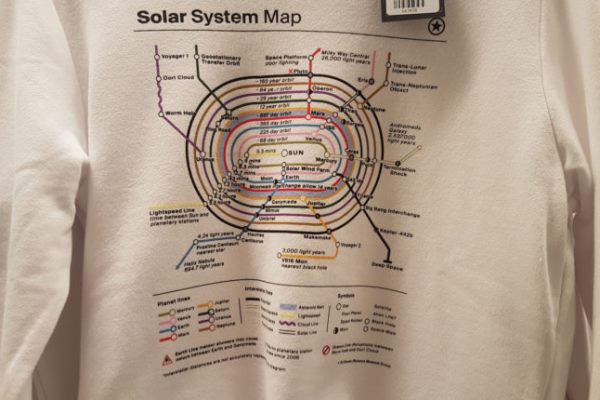 Com explica el responsable del blog sobre Londres IanVisits, el Museu de la Ciència de la ciutat té a la venda tot un seguit d’objectes (tasses, roba, bosses...) amb una representació del sistema solar que bé es podria confondre amb el mapa d’un transport subterrani.