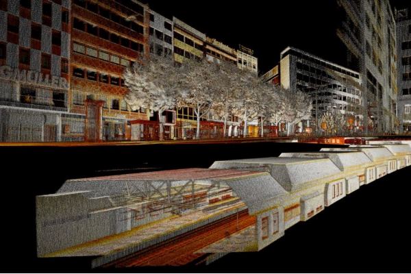 En aquest cas, l'empresa ha emprat l'eina Hovermap —que també es pot transportar manualment— des de dalt i des de baix d'una estació de metro a Alemanya. El resultat, aquesta espectacular animació.