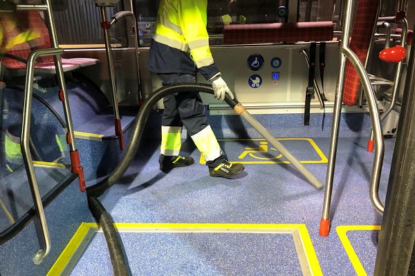 La desinfecció amb ozó s'ha afegit a les tasques nocturnes de neteja de la flota, que inclou diàriament l'aspiració i recollida de brossa de l'interior, de manera simultània amb el proveïment de carburant.