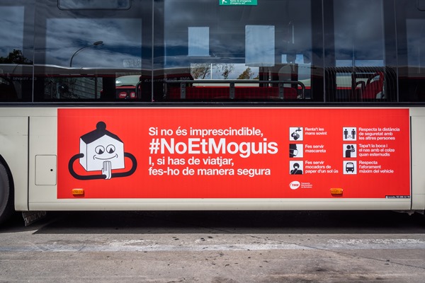 El lema és Mou-te de manera segura. Per protegir-te a tu i als altres. Els missatges recorden la conveniència de moure's a peu o en bicicleta sempre que es pugui, evitar les hores punta al transport públic i fer servir guants i mascareta, així com respectar les distàncies de seguretat recomanades.