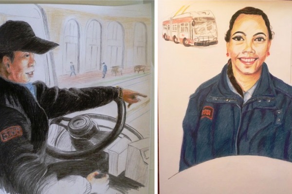 El David Chin sembla estar donant alguna indicació a un usuari del bus que condueix. La Veronica Jackson apareix somrient, amb el tramvia on treballa com a fons. Són dos dels dibuixos del llibre il·lustrat que, sobre els treballadors del servei de transports de San Francisco, conegut com a Muni, preparen l’artista Keith Ferris i l’escriptora Lia Smith.