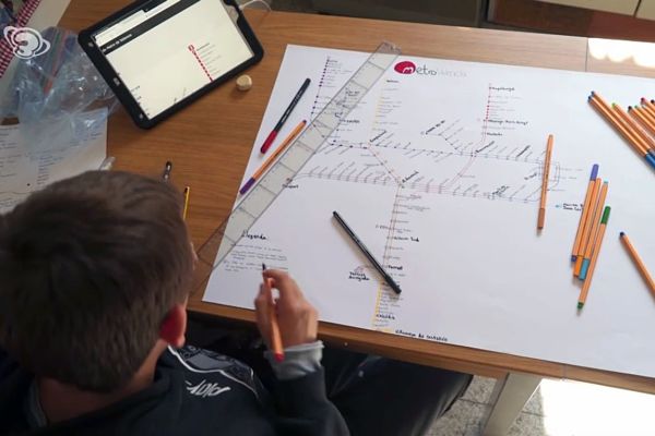 Fer plànols de xarxes de metro i altres transport pot ser una ofici o una afició. L'Eloi, de 12 anys, els fa aquests dies per entretenir-se durant el confinament, però primer es documenta com si fos un professional. I de passada aprèn geografia. Qui sap si en el futur...