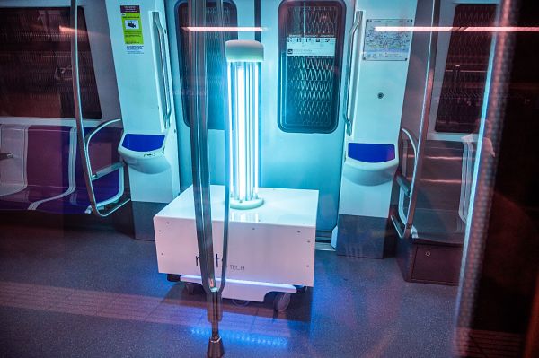 La llum ultraviolada és letal per als virus, però també fa mal a les persones, per això s'aplica mitjançant robots. A les proves en trens i dependències s'han fet servir diferents models de robot equipats amb llums UVC que actuen durant uns minuts de manera autònoma i amb l'espai buit de persones.
