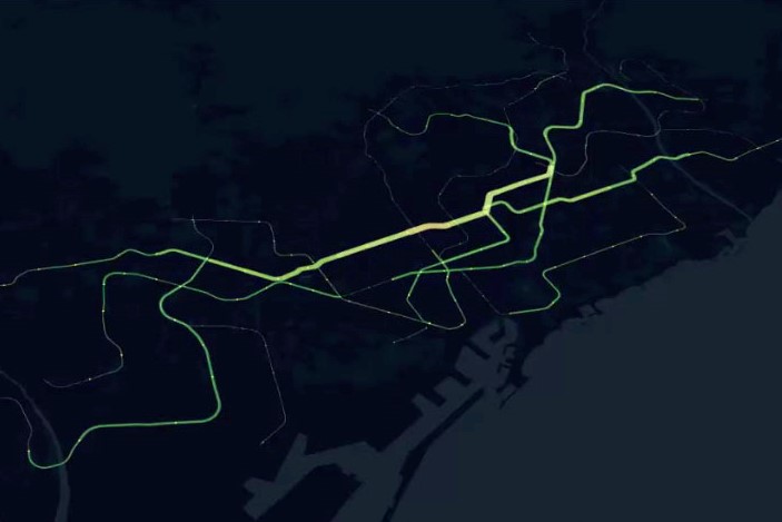 Amb dades dels sensors dels trens del metro, els tècnics de TMB han fet un gràfic animat que condensa en dos minuts escassos els fluxos de passatge al llarg de tota una setmana. Es pot comparar amb el reg sanguini de la Barcelona sota terra. Les línies s'il·luminen més fort com més alta és l'ocupació dels trens.