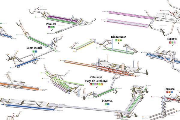 El grafisme i la senyalètica de les xarxes ferroviàries són eines essencials per fer-les entenedores per als usuaris, un veritable gènere dins la comunicació pública, i no sempre prou reconegut. Albert Guillaumes ha fet sensació a les xarxes amb la seva col·lecció de representacions en 3D dels intercanviadors i enllaços de la xarxa de metro de Barcelona, amb els seus passadissos, escales, andanes i vestíbuls.