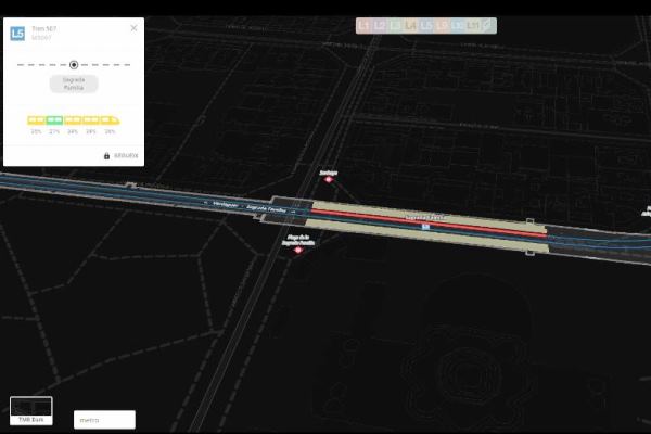 El vídeo que compartim, de poc més d'un minut, ofereix una visualització en temps real de la circulació a les línies de metro de Barcelona. Mentre veiem com es desplacen els vehicles, ens assabentem de dades com, per exemple, el tant per cent d'ocupació de cadascun dels trens, el mateix que ofereixen les pantalles de les andanes de tres estacions de la línia 5.