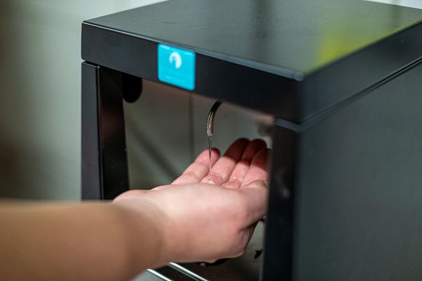 Seguint les indicacions de les autoritats sanitàries, es van instal·lar dispensadors de gel desinfectant a la xarxa de metro per ajudar a mantenir una bona higiene de mans per part dels usuaris. En un any (fins al març passat), TMB ha adquirit 34.330 litres de solució hidroalcohòlica per reomplir els 241 dispensadors col·locats pels mecànics de manteniment d'infraestructures de Metro en estacions i intercanviadors on la normativa sanitària els ha fet obigatoris com a complement de la neteja amb aigua i sabó que els viatgers puguin fer al punt d’origen i la destinació.