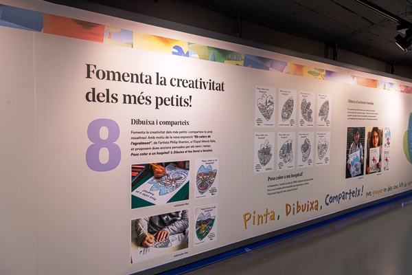 Ara, l'Espai Mercè Sala, la sala d'exposicions del metro situada a l'estació de Diagonal, acull Els colors de l'agraïment, un camí a l'esperança. La mostra és un making of de la realització del mural, però també una proposta interactiva que busca la complicitat del públic, inclosos els infants.