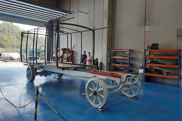 Dins dels treballs de restauració dels components de l'emblemàtic autobús Tilling Stevens de la Fundació TMB, ja s'ha muntat sobre el xassís l'esquelet metàl·lic del que serà la caixa de passatge, com veiem a la fotografia presa als tallers de Consman.