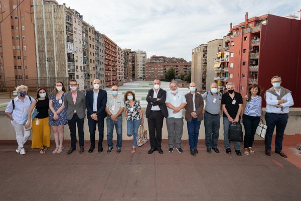 Una representació de veïns i responsables del Districte de Sant Andreu constaten el bon resultat d'una de les obres de desamiantatge i rehabilitació de més envergadura fetes a Catalunya.