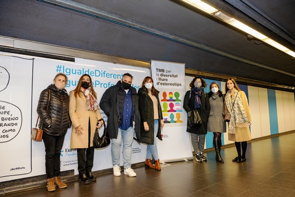 #IgualdeDiferents #IgualdeProfessionals anima els usuaris del metro que passin per l’estació Ciutadella / Vila Olímpica a compartir la campanya per derrotar uns prejudicis relacionats, sovint, amb el desconeixement. La mostra es podrà veure durant tot aquest mes.