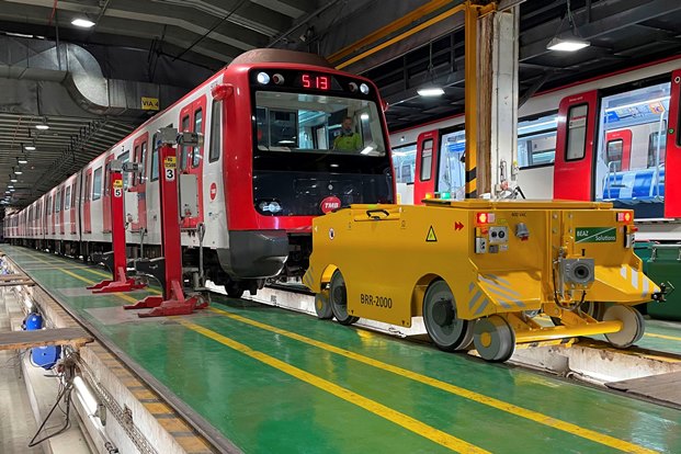 El nou locotractor BRR-2000, que funciona amb bateries elèctriques, ajudarà a fer els moviments dels trens dins del dipòsit de Vilapicina sense fums.