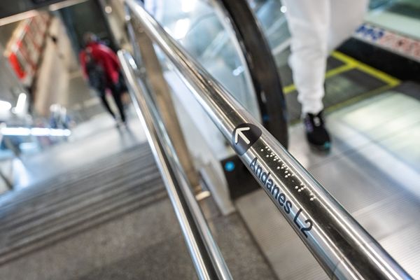 Dins de l’esforç constant per facilitar la plena inclusió i l’autonomia de les persones amb discapacitat visual a les xarxes de transport públic, TMB està desenvolupant una prova de materials per aplicar senyalització en braille en estacions de metro i en parades d’autobús.