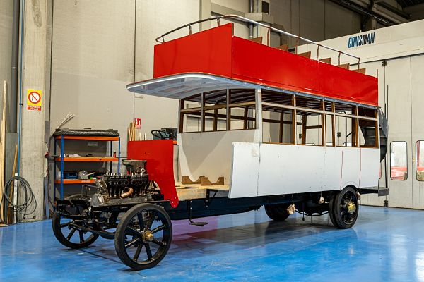 A les instal·lacions de Consman, l'empresa especialitzada que s’encarrega de recuperar l’emblemàtic autobús, del 1922, es treballa ara polint el dipòsit de carburant, una singular peça de coure que té l’espai reservat sota el seient del conductor. Faltaran per instal·lar els seients del pis inferior, els vidres i tota la cadena elèctrica. La pintura li acabarà de donar l’aspecte imponent que tenia quan circulava per les línies de la CGA als anys 20 i 30 del segle passat.