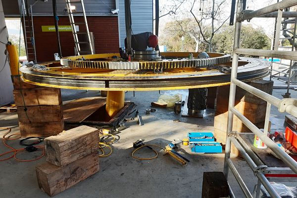 En les fotos del reportatge es pot apreciar que ja s’ha desmuntat el volant motriu (la gran politja per on llisca el cable de tracció, situada sota l’estació inferior) i altres components tècnics estan a punt de ser substituïts o examinats. En el primer cas hi ha el reductor, que forma part de la cadena de tracció, mentre que en el segon hi ha el motor tèrmic auxiliar, del qual s'ocupen els tècnics del fabricant.