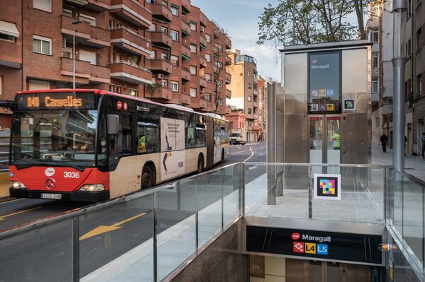 Avui s’ha obert al públic el nou vestíbul adaptat de l’estació Maragall de la línia 4 de metro, que d’aquesta manera s’ha fet accessible a persones amb mobilitat reduïda. Les obres continuen per eliminar barreres a l’estació germana de la línia 5 i a l’enllaç entre totes dues.