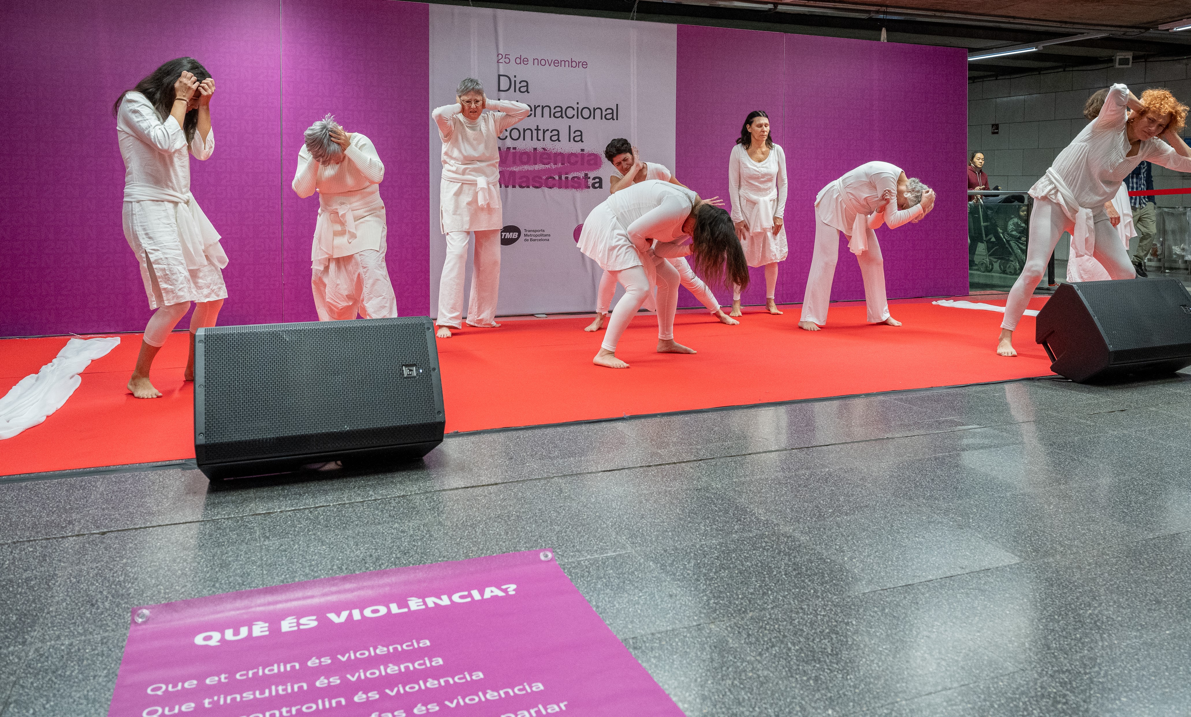 L'acte del 25N de TMB, que es va celebrar al vestíbul del metro d'Universitat, va comptar amb la lectura d'un manifest conjunt per part de Thaïs Sánchez, de la Plataforma Unitària contra les Violències de Gènere, on es va recordar que "drets que pensàvem garantits es veuen amenaçats per l’avenç ferm dels moviments, partits i governs d’extrema dreta al món, que s’enfronten al canvi social i als valors que impulsen les lluites feministes". En aquesta línia, el manifest especificava que "les violències sexuals es denuncien cada cop més" però alhora "encara queda molta feina per endavant perquè el 80% dels delictes sexuals que no es denuncien, es detectin i s’erradiqui el qüestionament de les víctimes en el seu pas pel sistema policial i judicial".