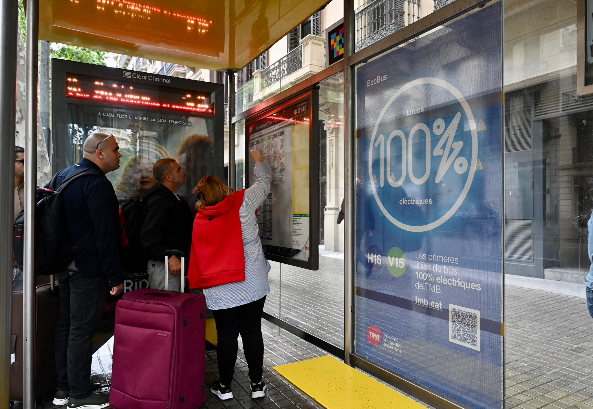 Les marquesines de les línies H16 i V15 llueixen uns vinils específics que informen de que les línies que s’hi aturen estan servides amb autobusos zero emissions.