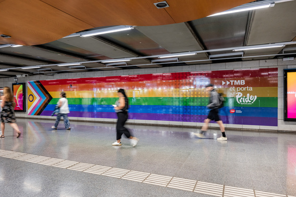 Transports Metropolitans de Barcelona (TMB) se suma a la celebració del Dia de l’Orgull LGTBI. Per segon any consecutiu, en col·laboració amb Pride Barcelona, l’estació d’Universitat de la línia 1 del metro de Barcelona s’ha decorat amb els colors de la bandera de l’arc de Sant Martí.