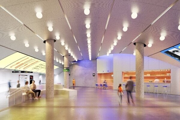 El disseny interior del nou vestíbul aposta per una configuració fluida i accessible, amb un cel ras suspès de geometria orgànica que integra il·luminació, senyalística, pantalles audiovisuals i sistemes tècnics. L’espai, que comptarà amb un nou bar a l’estació i un banc multifuncional, pretén esdevenir l’avantsala del museu, un punt de trobada ciutadà, de difusió d’activitats i d’esdeveniments culturals.