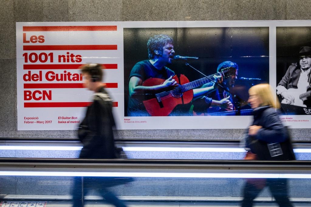L'estació de metro de Diagonal s'ha convertit en un escenari més del festival: avui ha acollit una actuació de flamenc jazz de la cantant Paula Domínguez i també s'hi pot veure una mostra fotogràfica que repassa la història del Guitar BCN.