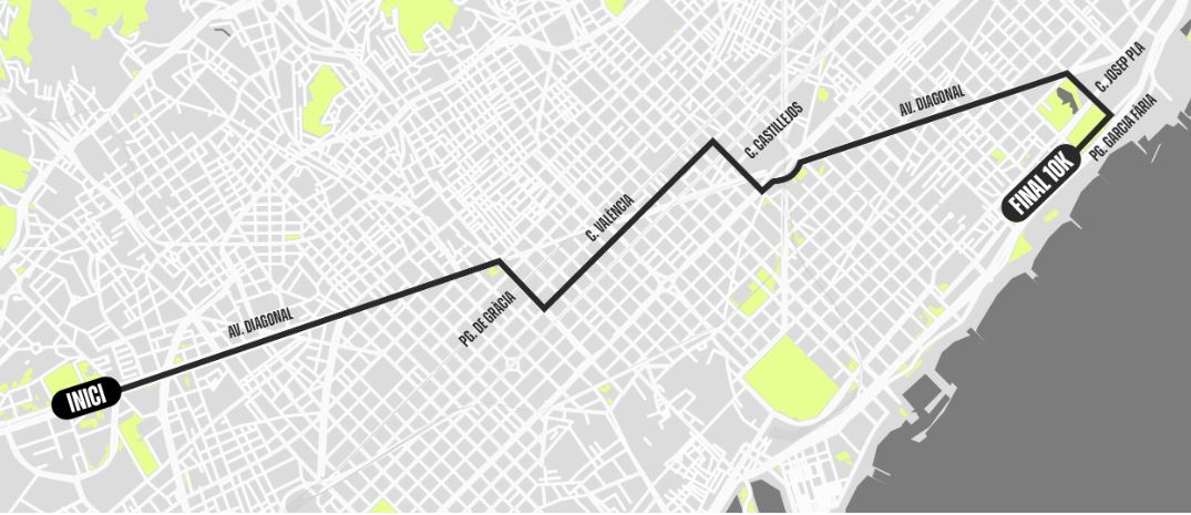 La cursa de 10 quilòmetres sortirà a les 8.30 hores i afectarà tot el trànsit de superfície per on es desenvolupi entre les 5 i les 12.30 del matí aproximadament. La prova farà la major part del recorregut per l’avinguda Diagonal de Barcelona de muntanya a mar, començant a l’altura del Palau Reial de Pedralbes i finalitzant al passeig Garcia Faria, entre els carrers de Josep Pla i Selva de Mar, a la zona Fòrum.